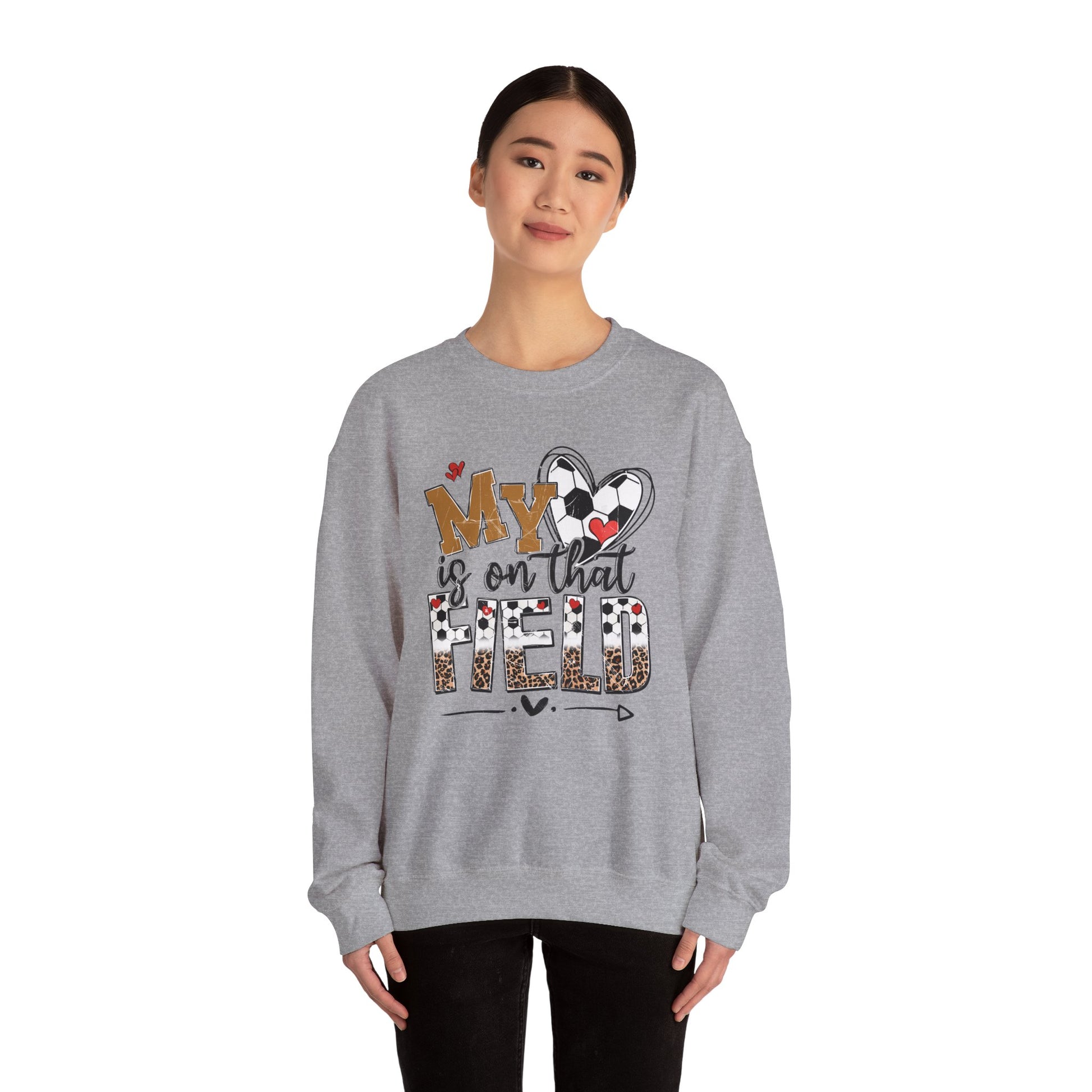 A cozy Soccer Mom Crewneck Sweatshirt perfect for supporting youth sports teams. This unisex heavy blend sweatshirt is a great gift for sports moms and features personalized sportswear. The garment is made for adults, meets various compliance requirements, and is made in Nicaragua.